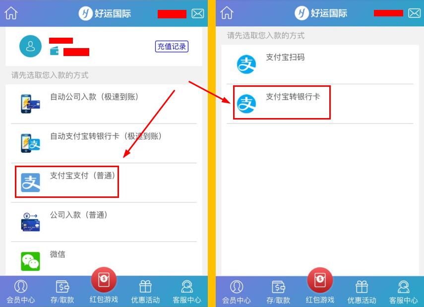 手机用户点击右上角登入,登入会员账号,点击屏幕下方导航中的存/取款--存款。再点击支付宝支付(普通),选择支付宝转银行卡